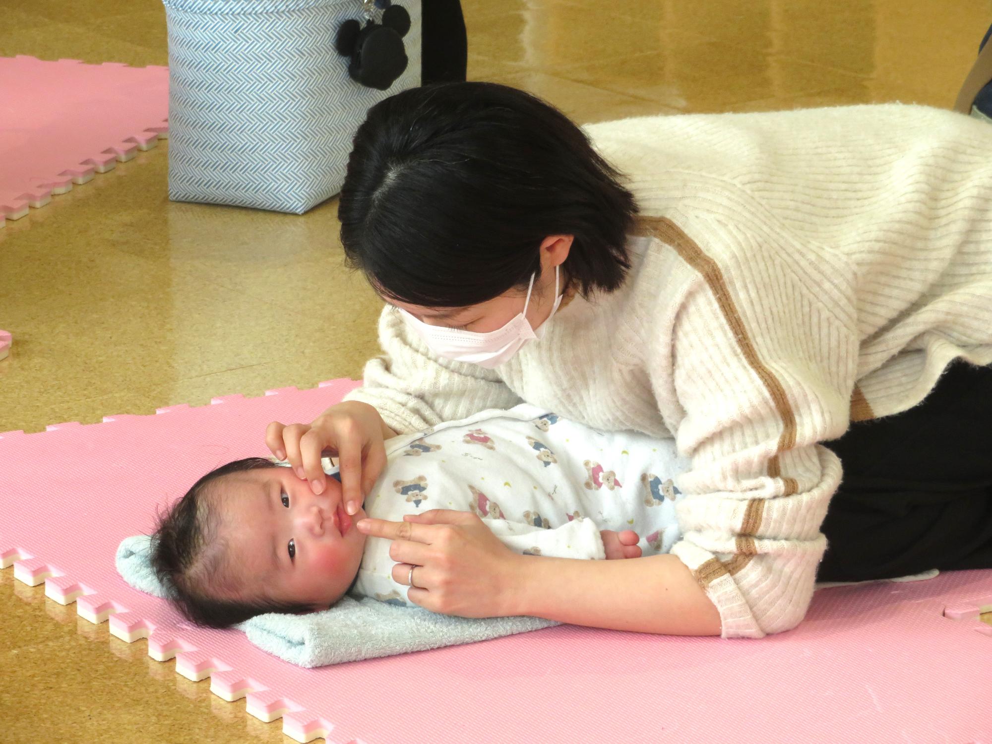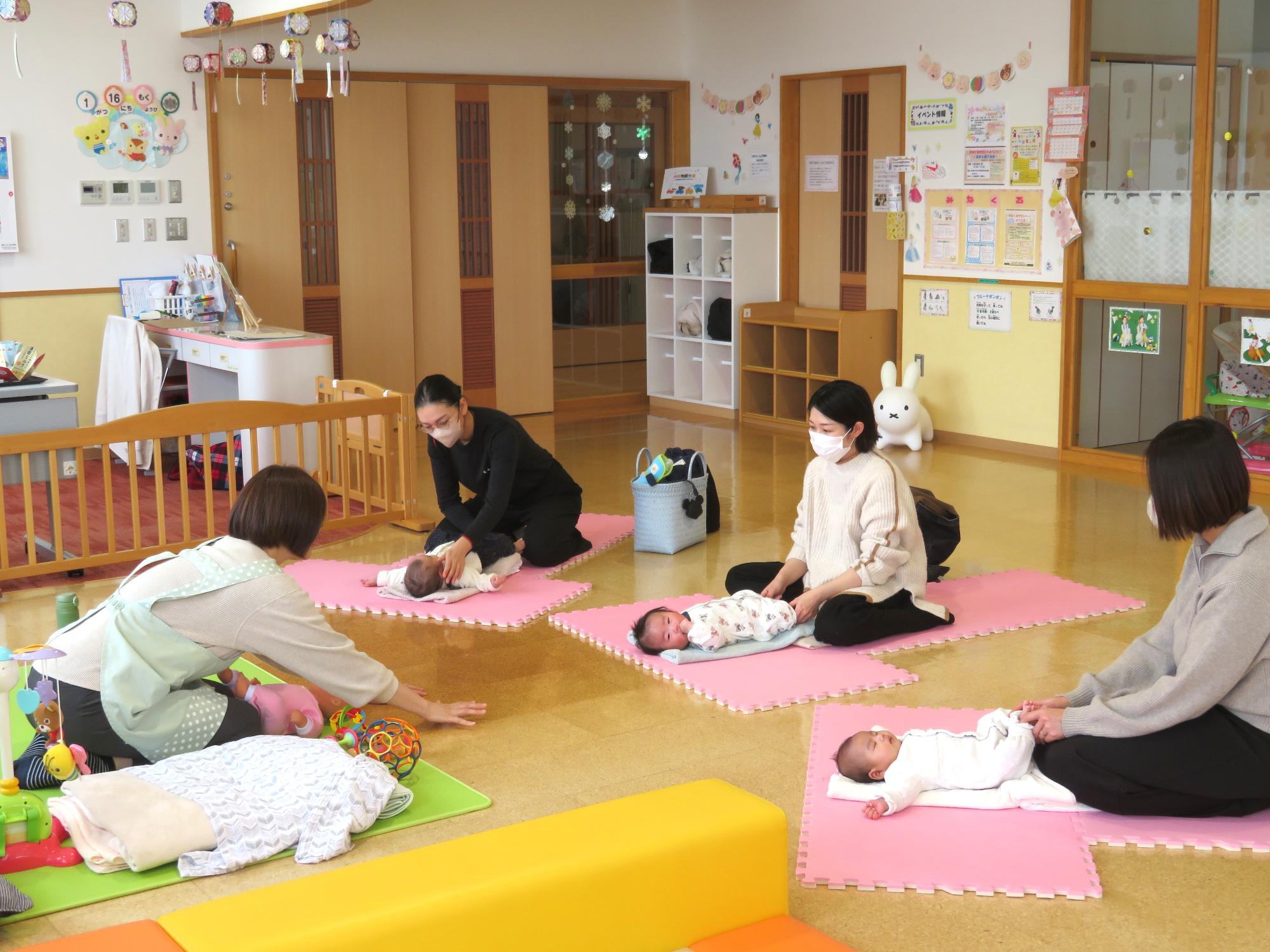 お家でできるマッサージの方法や赤ちゃんの発達を促すお世話の仕方、遊び方などを