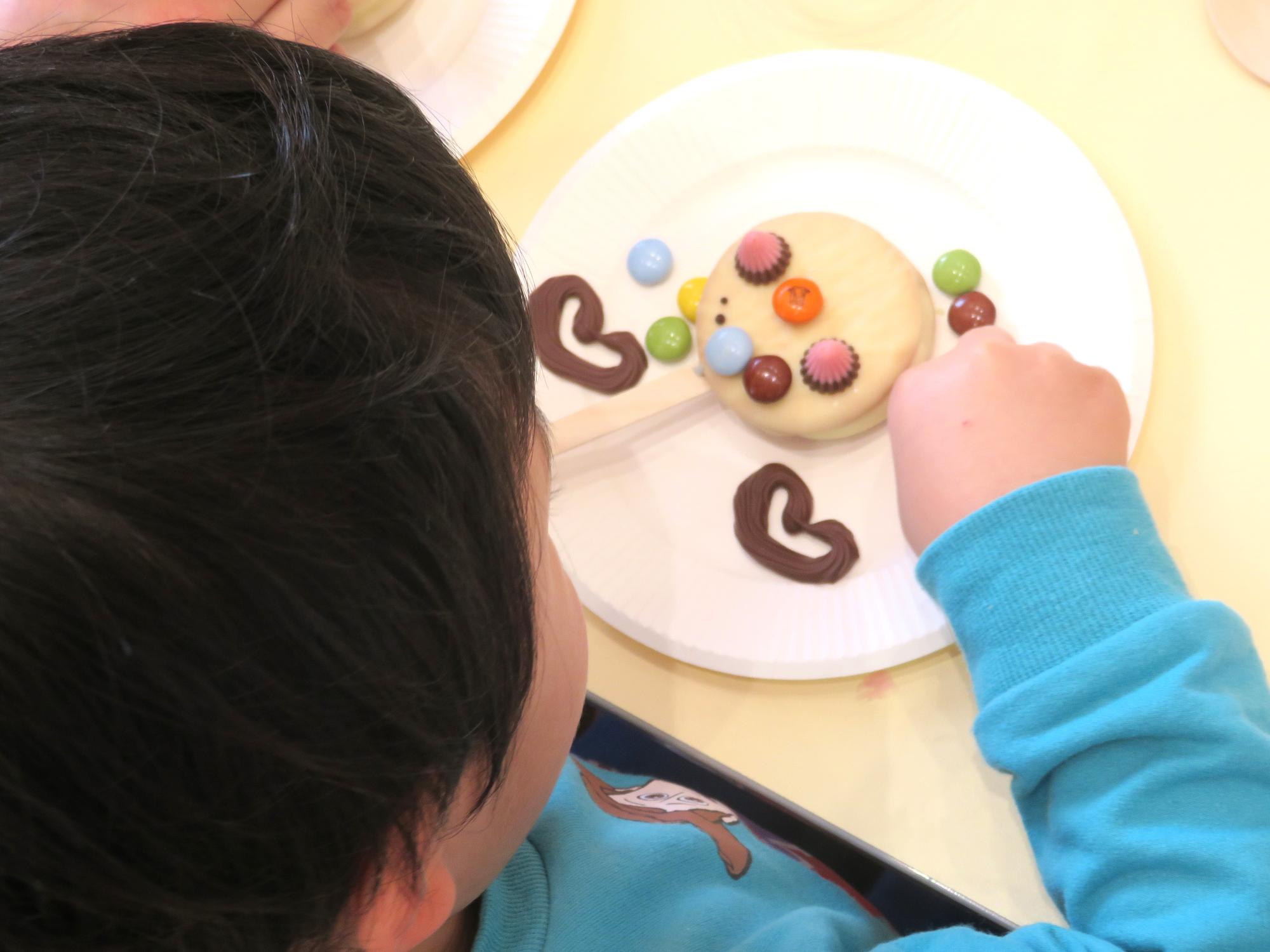 お菓子で顔を作るんだって(*'▽')